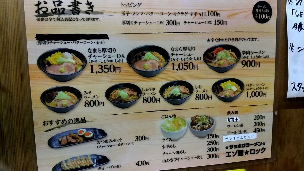 サッポロラーメン エゾ麺ロック 2017年02月24日 Rating : サッポロラーメン エゾ麺ロック@新栄 東新町交差点の近くのお店です。 『なまら厚切りチャーシュー』を注文。 チャーシューのインパクトは大です。 味も悪くないですが、甘めで味噌らしさがないかも? 「名古屋市」カテゴリの最新記事 < 前の記事次の記事 >