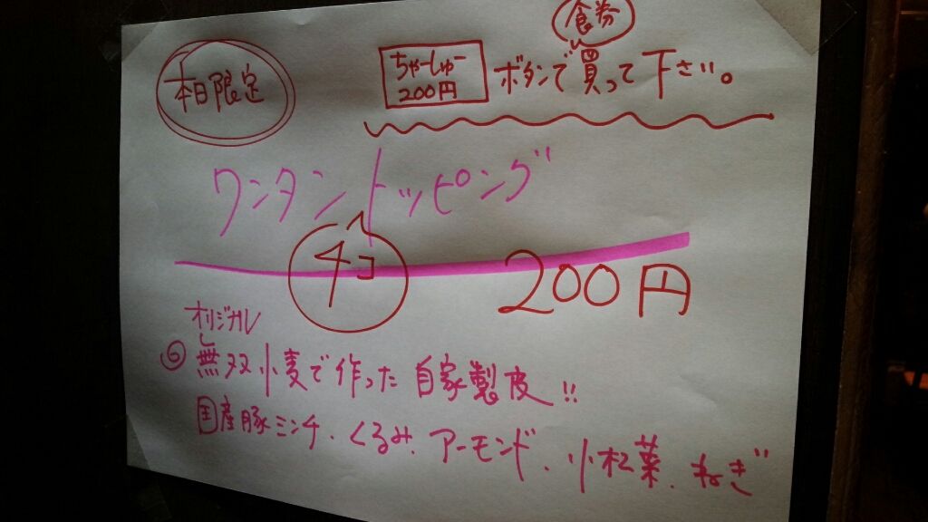 悩みましたが『ヤマコ超特選醤油煮干しラーメン 800円』にこれまた限定の『ワンタン』をトッピング。
