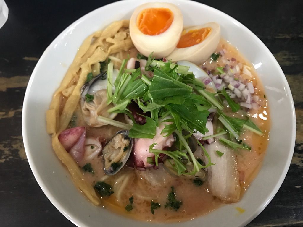 一口目…口の中にブワッと魚介風味が広がる。うん、ブイヤベースのラーメン版!
