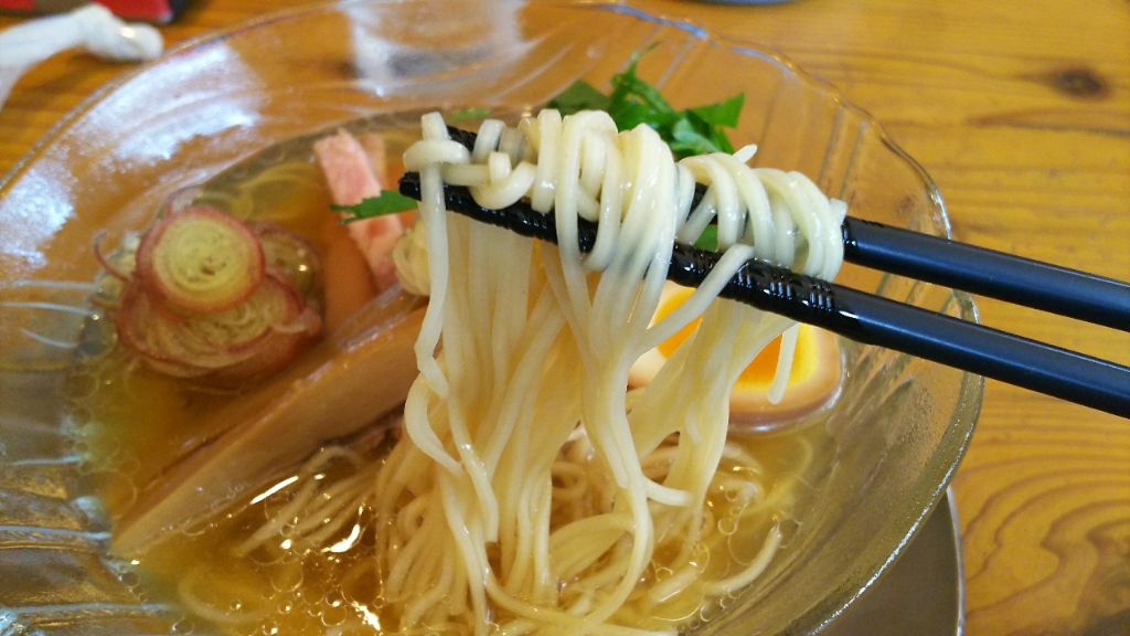澄んだスープをすすると、スッキリとした苦味のない煮干しの味です。