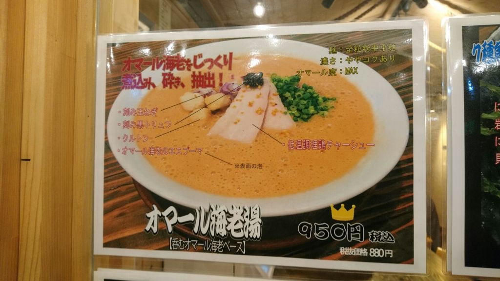 店の外にメニューが貼ってあって、やはり一番気になる『オマール海老湯』です。
