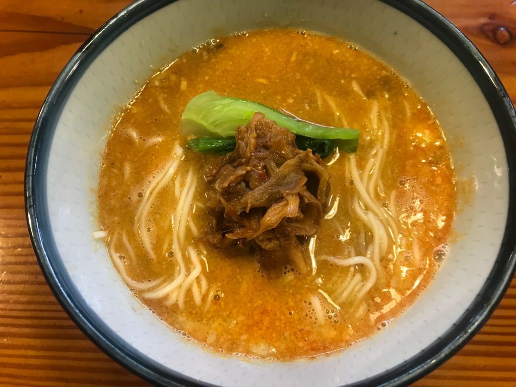 担々麺は、少しピリッと辛く、さっぱりしてあるのにコクがある感じ。胃にずしっと重くないので夜遅くに食べても大丈夫そうです。乗っているのはミンチではなく、トロッと煮た甘辛のお肉。麺は細麺の割には弾力あって美味しいです。