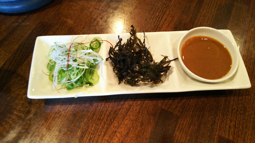 スープは、秋刀魚の出汁が効いて美味しい。レンゲに麺を入れ、味噌をつけて食べると、味が濃厚になり、うまうまです。