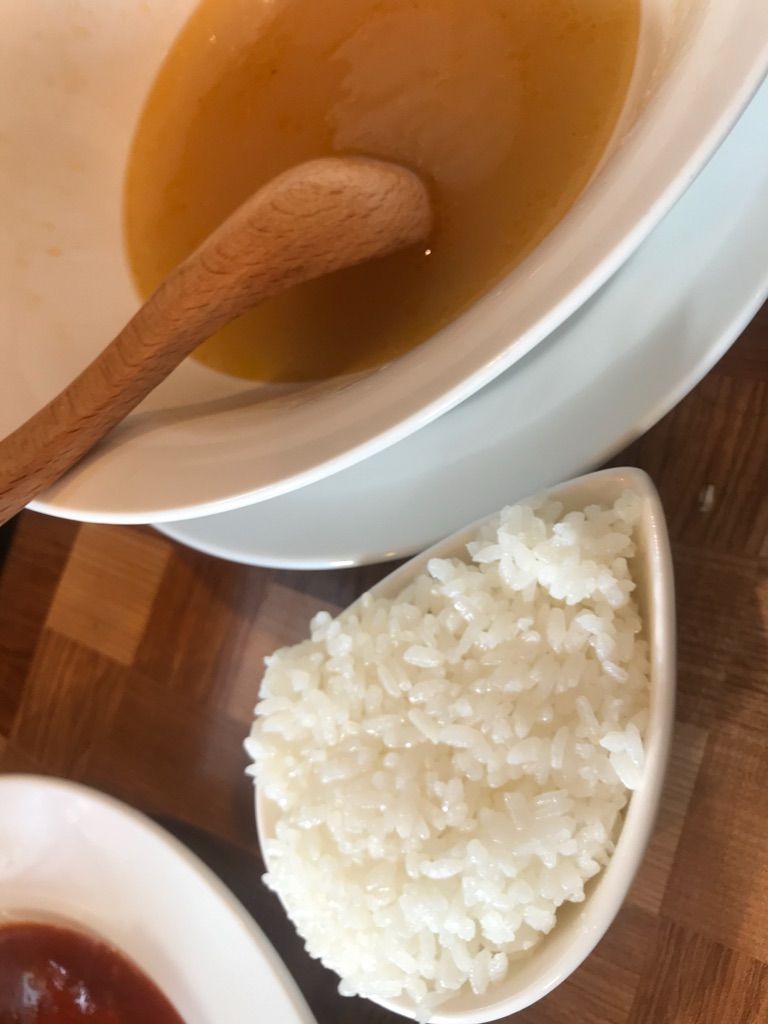 最後に追い飯のサービス、リゾット風にいただきました。しかし、こちらにはハヤシライスのセットが!!