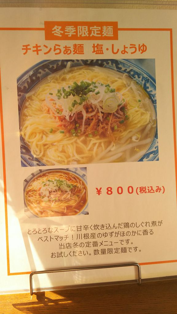 らぁ麺屋 まるみ 2018年01月31日 Rating : らぁ麺屋 まるみ@静岡県藤枝市★★★☆☆3.4久しぶりの訪問。といっても、1ヶ月くらいか。所用で午前休みの朝らーです。冬季限定の「チキンらぁ麺 塩」を注文。スープの上が餡掛けのようになっており、最後まで熱々で食べれます。チキンは、鶏のほぐし身で、塩味がついています。丼の回りにはモヤシがあり、しゃきしゃきして美味しいです。麺は、3種類から。手もみ中細麺をチョイス。とろみのあるスープがよく絡み美味しい。柚子の皮が入っていて、サッパリです。 「静岡県」カテゴリの最新記事 < 前の記事次の記事 >