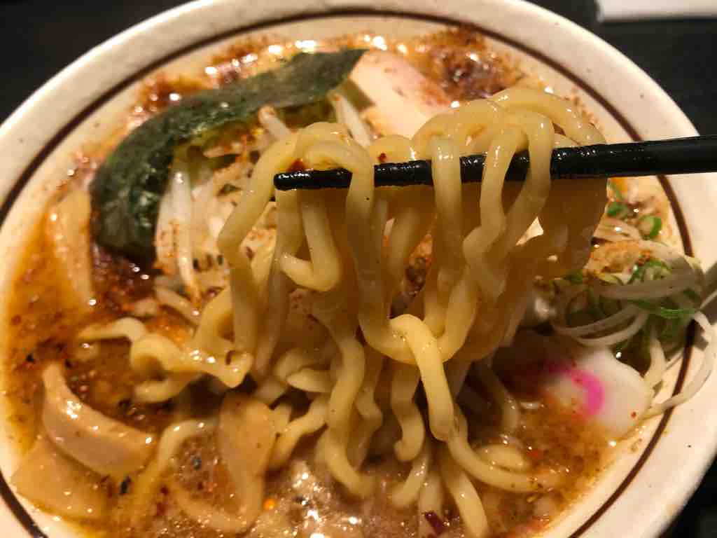麺がかなりスープとよく絡む!辛い、辛い。