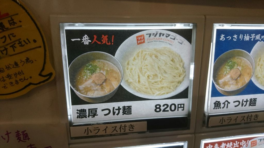 券売機で左上の一番人気『濃厚つけ麺 820円』をポチリます。