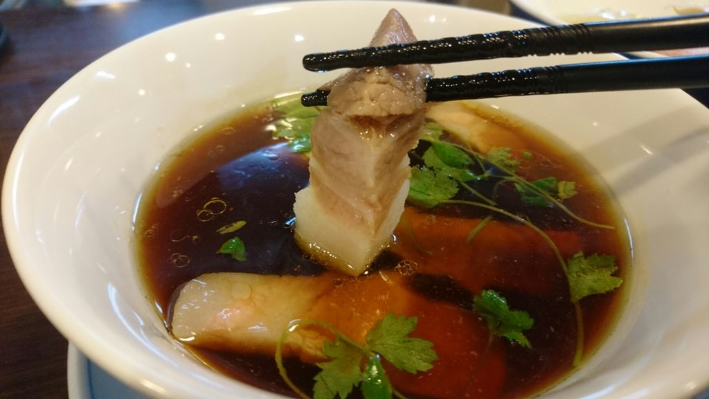 チャーシューを堪能してから、麺をつまんでドボン!