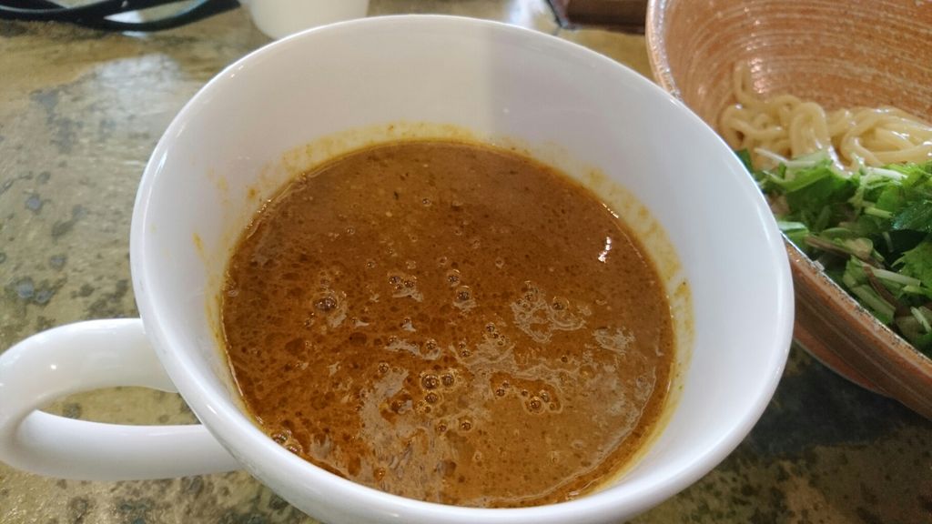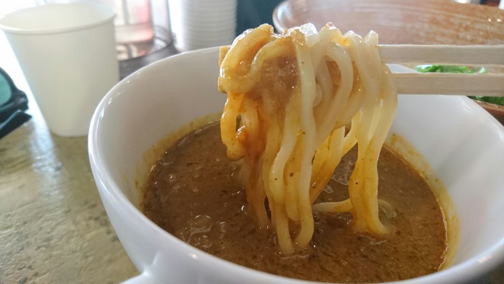 ラストはカレーつけ汁にドボンとつけて食べます。