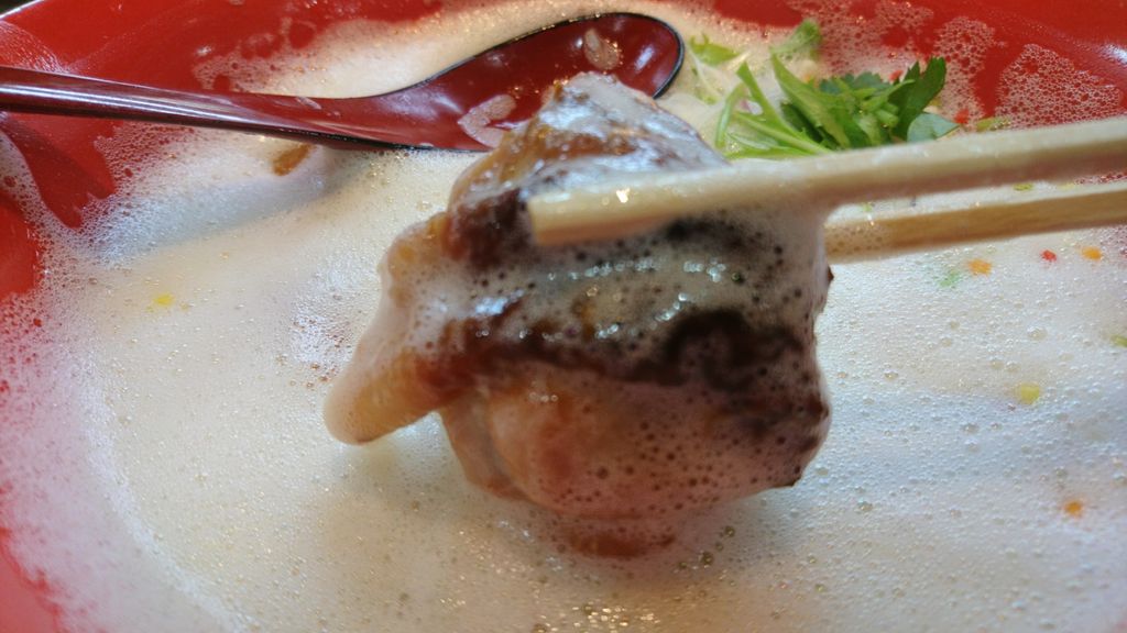 チャーシューの代わりの鶏肉は唐揚げかよ!?と言いたくなるくらい、ジューシーでこれまた美味い!!