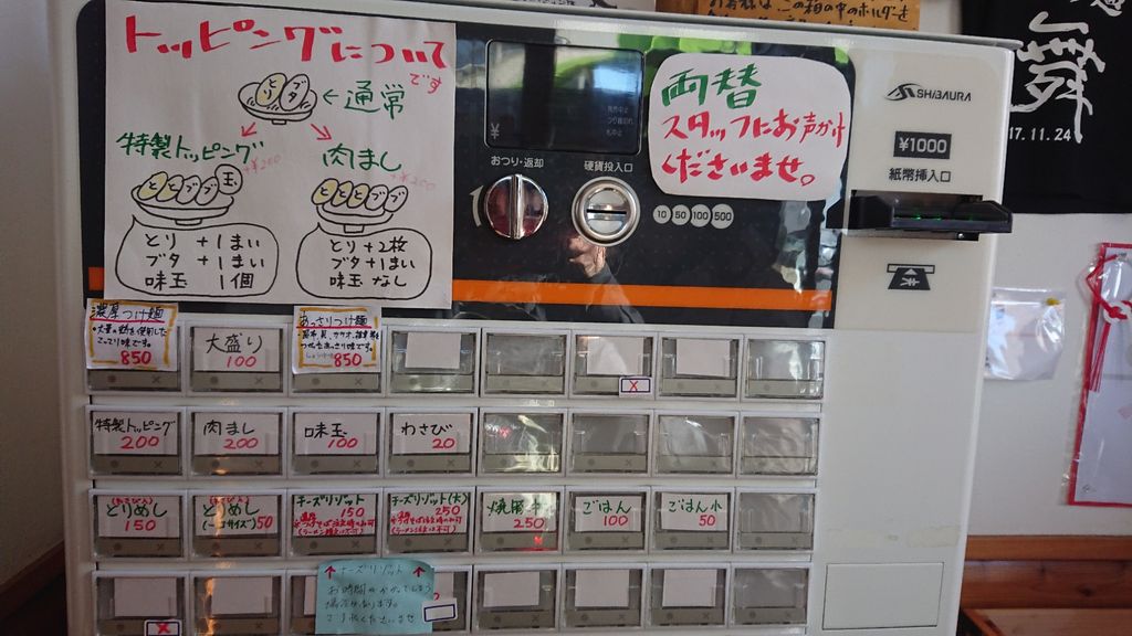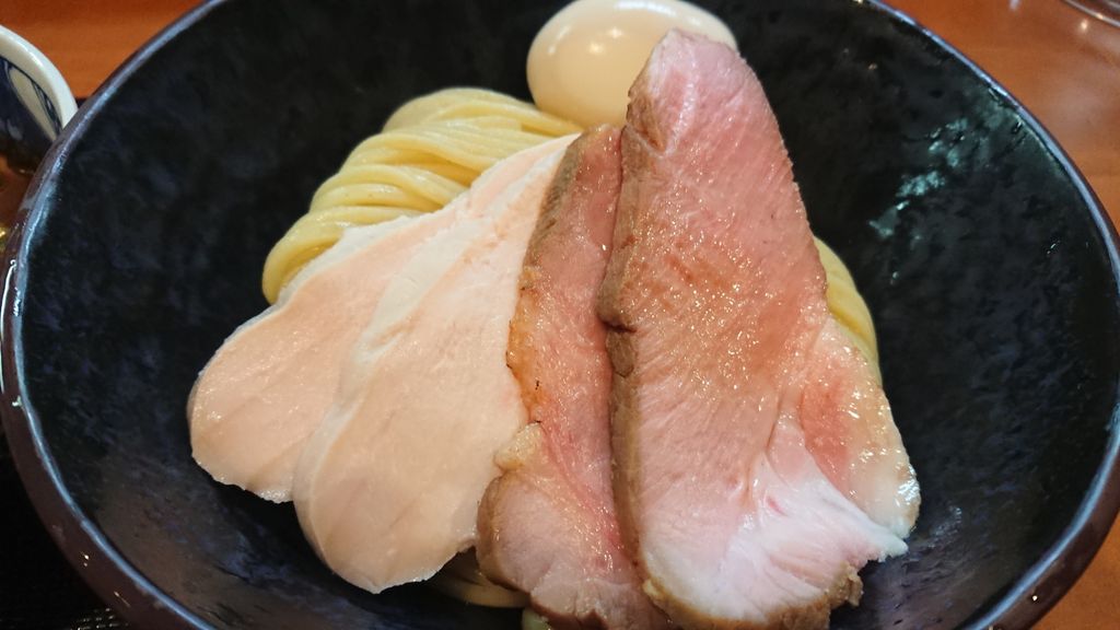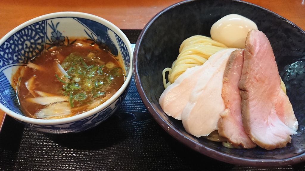 つけ麺 舞 2018年12月28日 Rating : つけ麺 舞@あま市 180杯目★★★★☆4.0久しぶりです。隊長に煽られてやって来ました。運良く一巡目です。『濃厚つけ麺』+『特製トッピング』ビジュアルが良いですね。チャーシューがおいしそう。先ずは、麺のみ。モチモチで美味しい麺です。つけ汁に麺をちょん付けして食べるとちょうど良い感じ。まろやかな味わいで、美味しいです。チャーシューは、2種類ともレベル高いですね。美味しかった。大盛にすれば良かったかな。満足の1杯でした。 「名古屋市」カテゴリの最新記事 < 前の記事次の記事 >