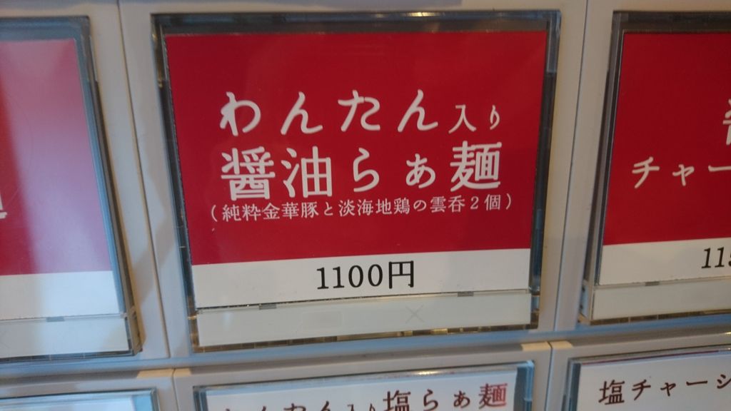 まずは本命の『わんたん入り醤油らぁ麺 1100円』です。