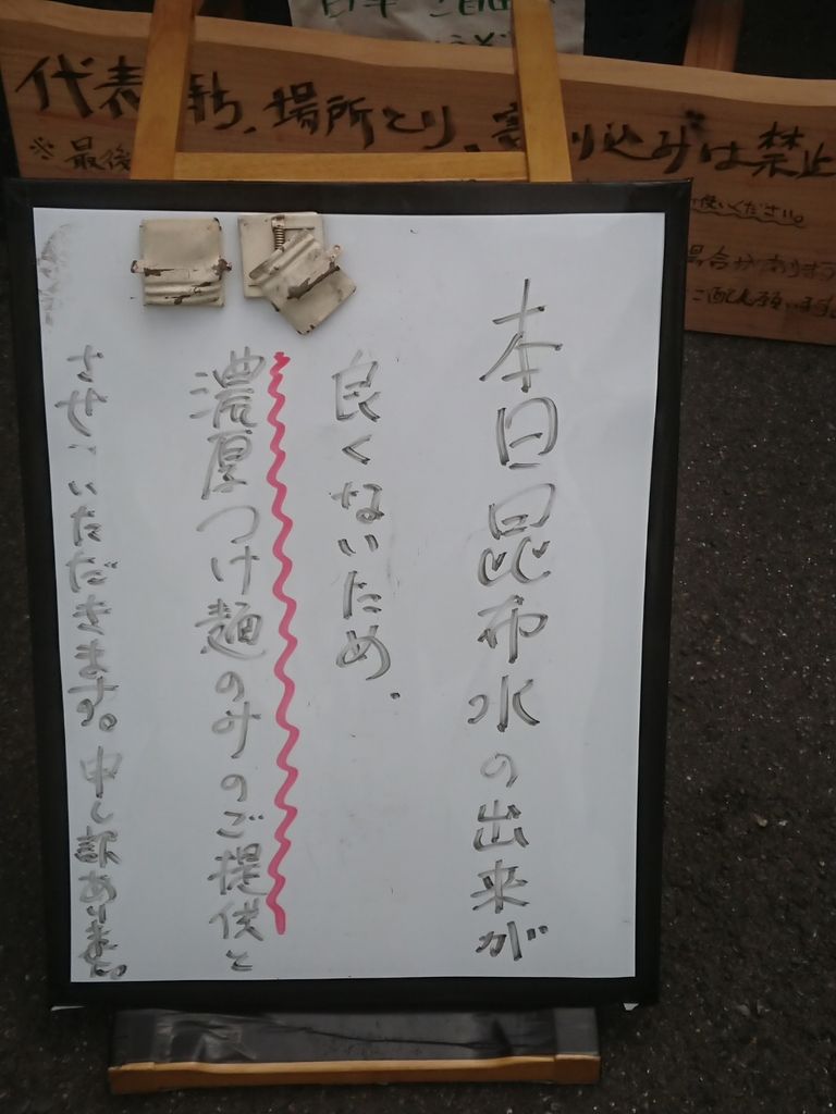 道中、店主ツイートで昆布水の出来が良くないので濃厚つけ麺のみ提供の告知あり!!