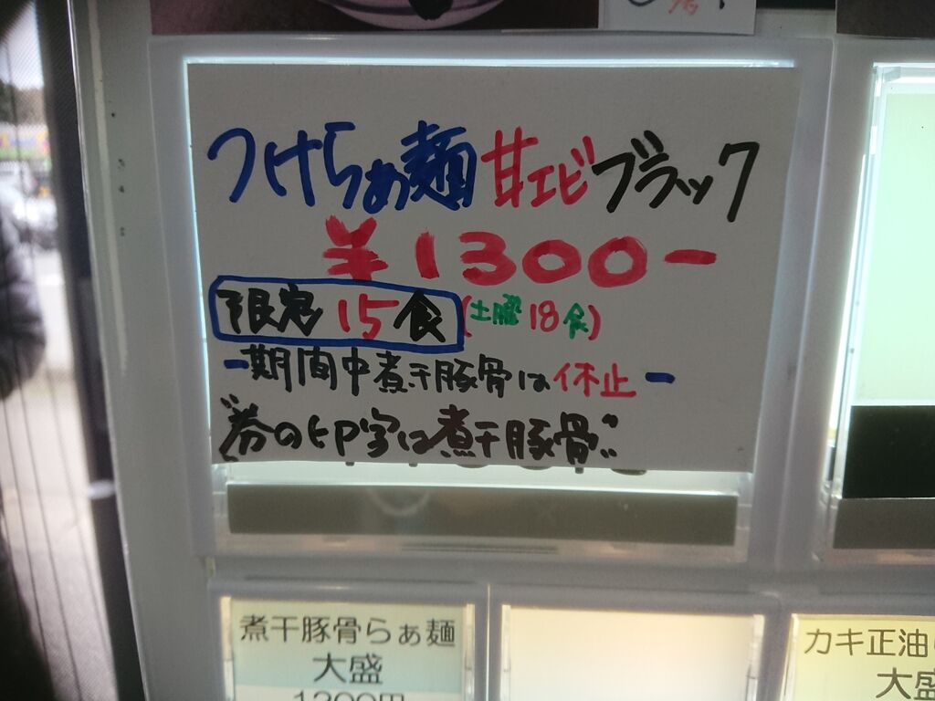 さて、もちろん本日も『つけらぁ麺甘エビブラック大盛り 1400円』です。