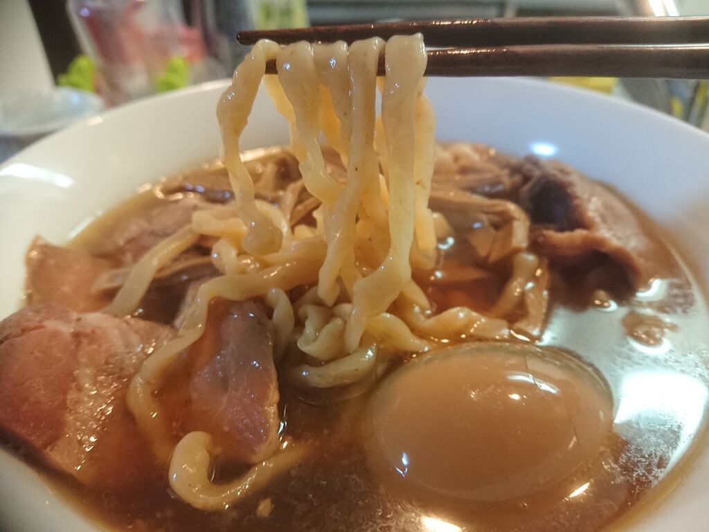 想像してた煮干し感より、マイルドで醤油がふかーい感じのスープ。
