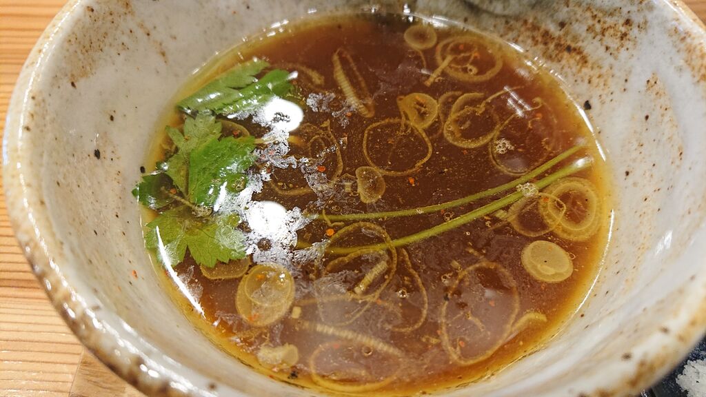 つけ汁は、醤油、鶏油、出汁の香り、旨みがあり、