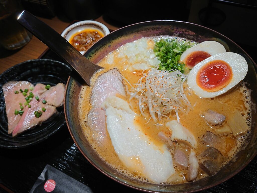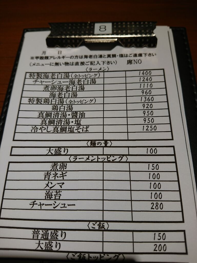 初訪のセオリー通り、筆頭の🦐『煮卵海老白湯 1110円』に店員さんの勧めに乗せられ『牛タンチャーシュー 240円 』です。