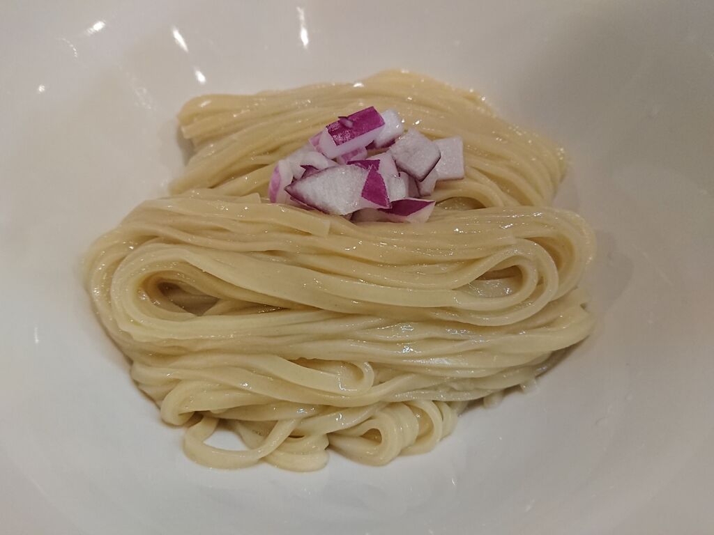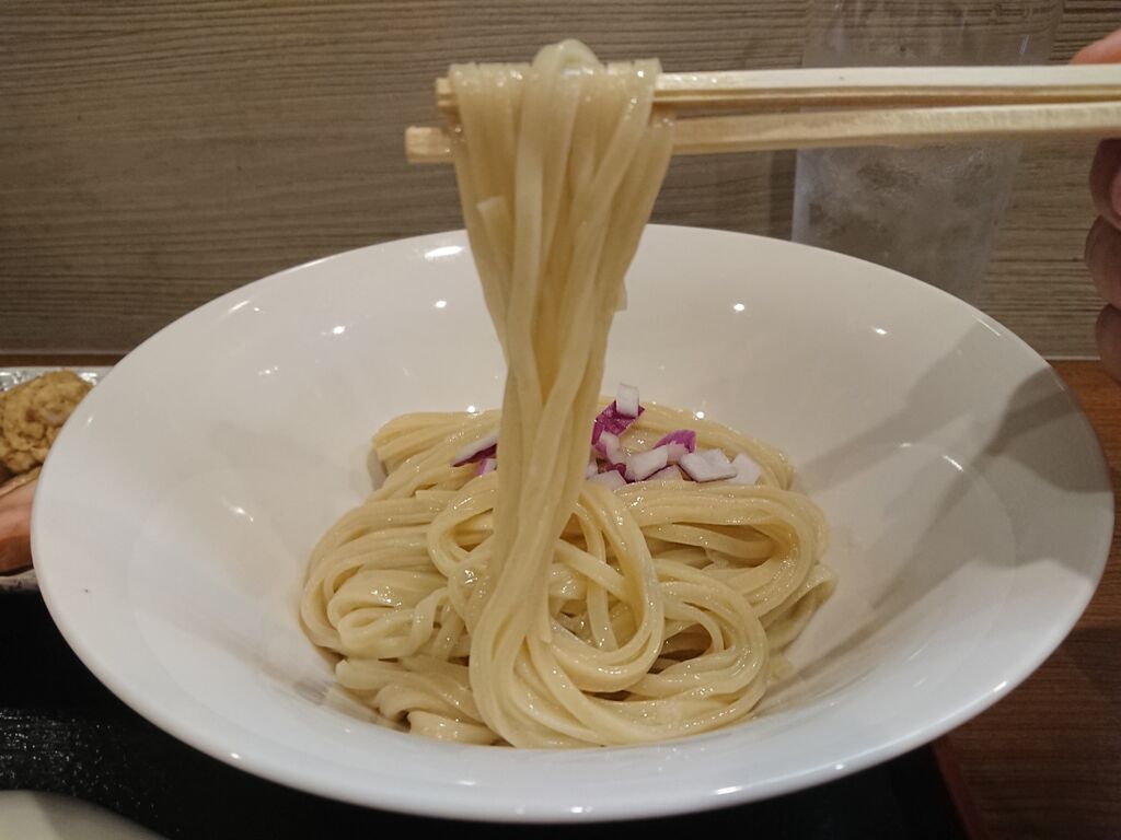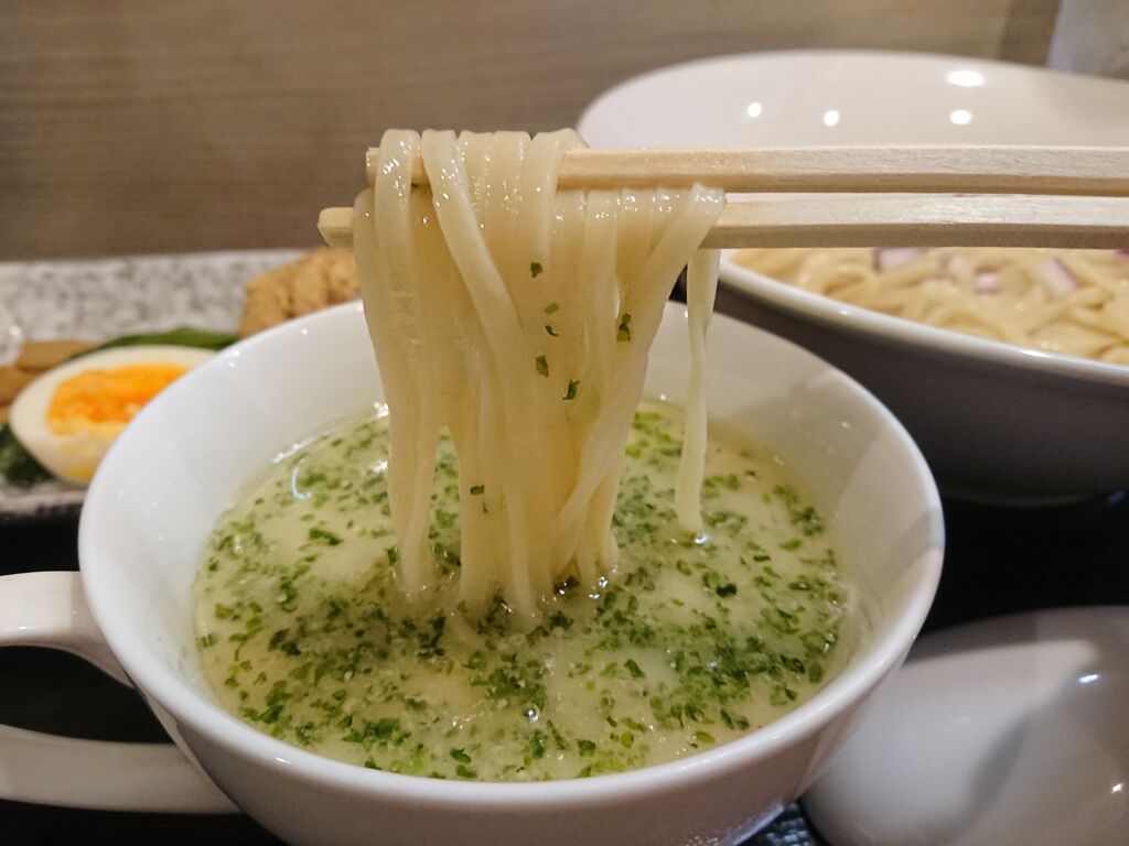 その麺を白湯つけ汁にスッとくぐらせて啜ります。