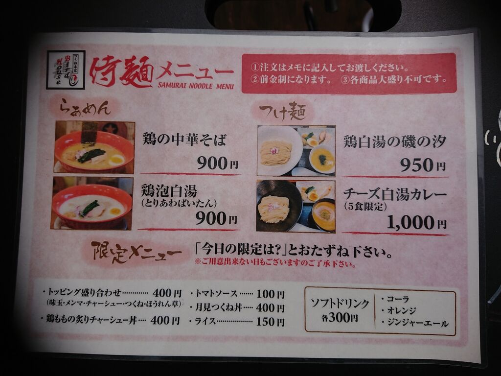 限定とカレー無しと残念な展開ですが、残り福の『鶏白湯の磯の汐 950円』です。