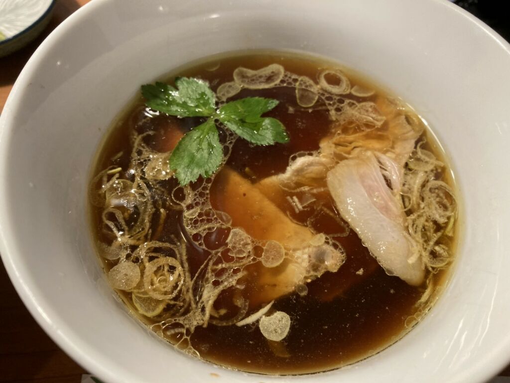 麺だけでイケる!が、つけ汁につけると、ほのかな柚の香りと、鶏&醤油がいい塩梅で合わさってスルスルと入っていきます。