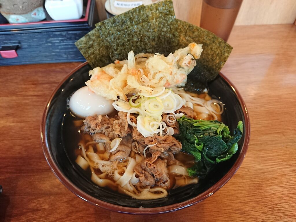 注文は『肉うどん中盛り 730円』『さんすけ盛り 150円』『かきあげ 100円』 です。