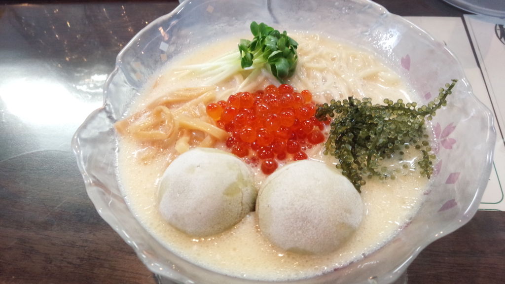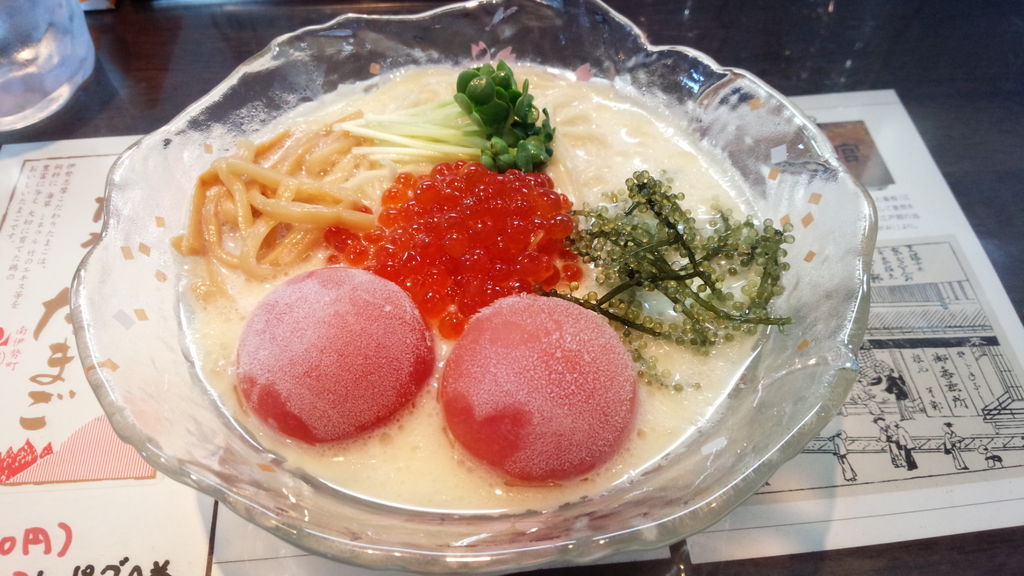 『豆乳冷やし ウニ玉』雲丹氷を豆乳に溶かしながら食べる冷やしらぁ麺は唯一無二です。