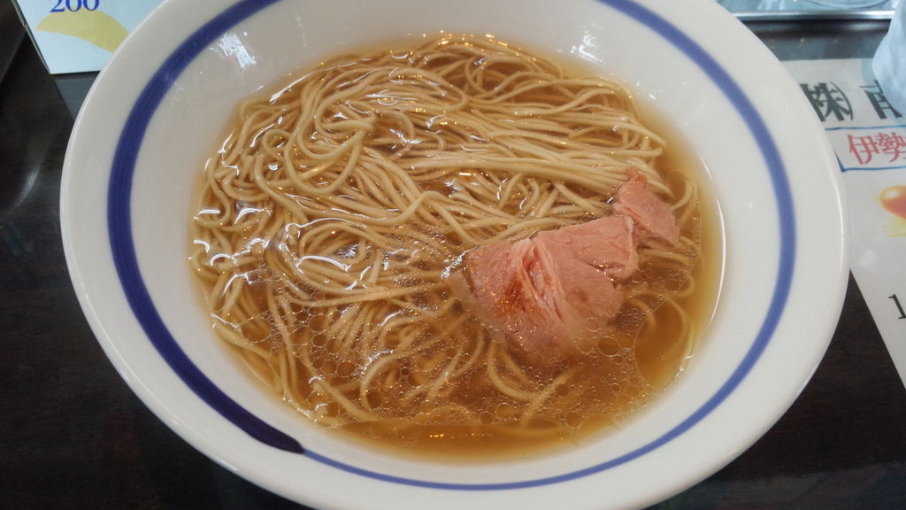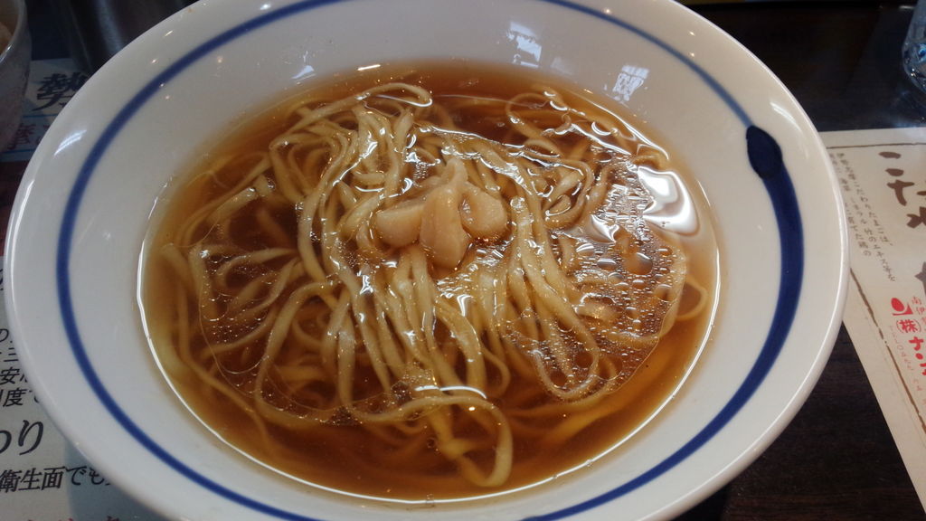 『真珠貝の塩らぁ麺(かけ)800円』塩とは思えない濃厚な味を中太麺で提供です。