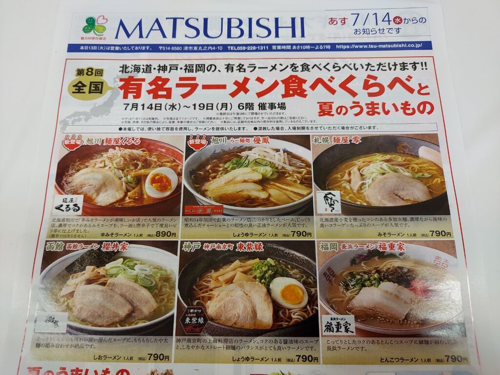 松菱で「有名ラーメン食べくらべ」が開催されてます。
