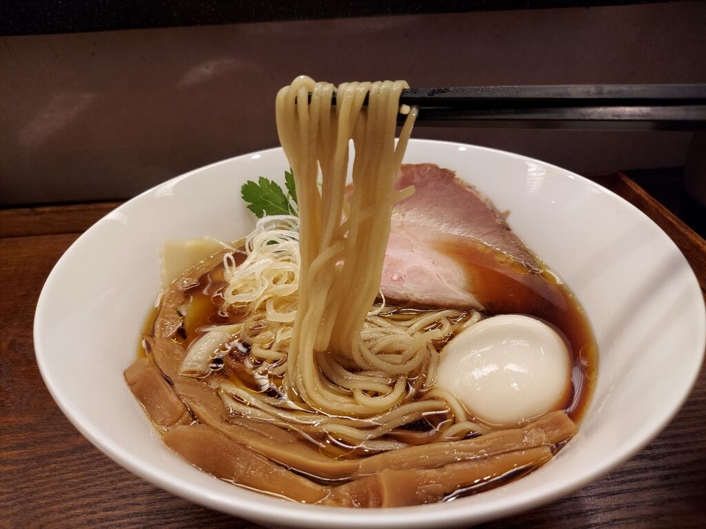 麺は見た目より口の中で少し太めに感じ、スープとの相性抜群!