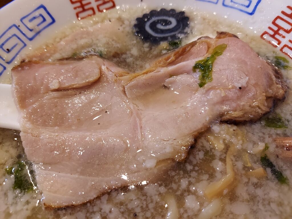 本日も背脂プカプカのスープに、ドカーンとチャーシューに鶏節に海苔でメチャクチャうまそ🤤