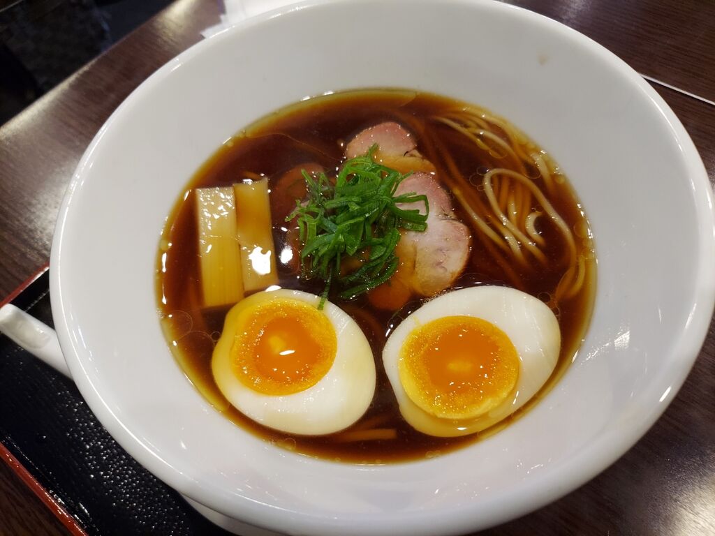 鶏の薫りがプンプンするスープは濃い味のたまりベースでした。