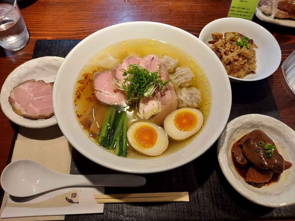 それなら本日は『ちゃーしゅーわんたん麺 塩味 1350円』に『くんたま 100円』、『鹿児島黒豚厚切りちゃーしゅー 300円』『地鶏スタミナ肝しぐれ 300円』『地鶏と根菜の味ごはん 230円』のフルフルコース(笑)!!