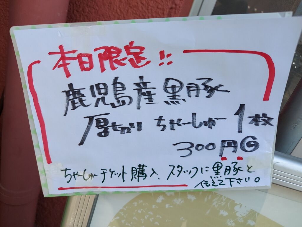 「本日限定! 鹿児島黒豚厚切りちゃーしゅー」の告知!!