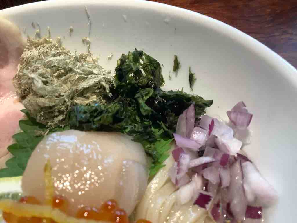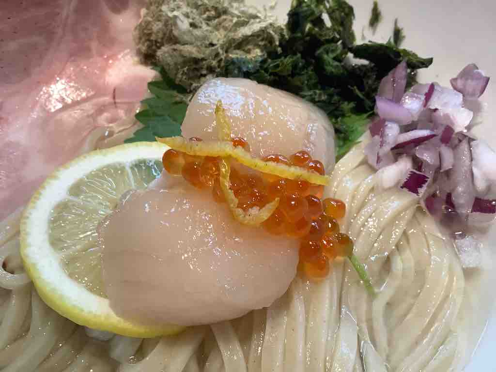 乾物だけでは無い感じの魚介塩スープにホタテ貝の旨味が詰まった