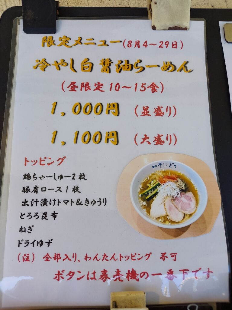 無事に『冷やし白醤油らーめん 1000円』ポチれました!