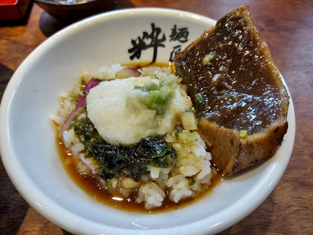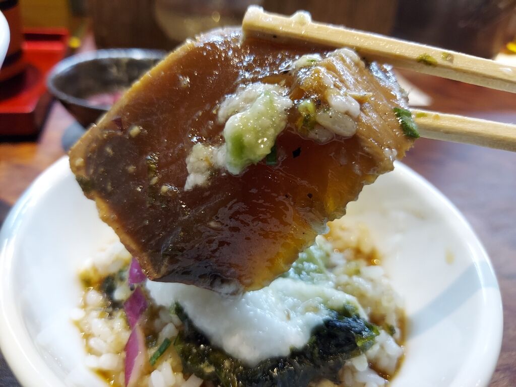 〆は鰹とご飯にトロロとおつゆをかけて、山葵トッピングしていただきます🙏