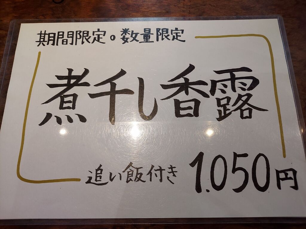 そろそろ終わっちゃうのかな?🤔と思いつつ、『煮干し香露(追い飯付き) 1050円』コールです。