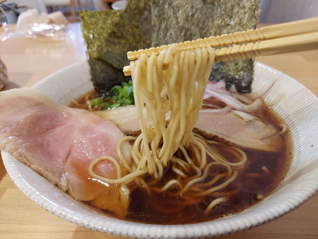 やはり濃い醤油スープにはボソ麺がいいのかなぁ?と思いつつすすりきります🍜