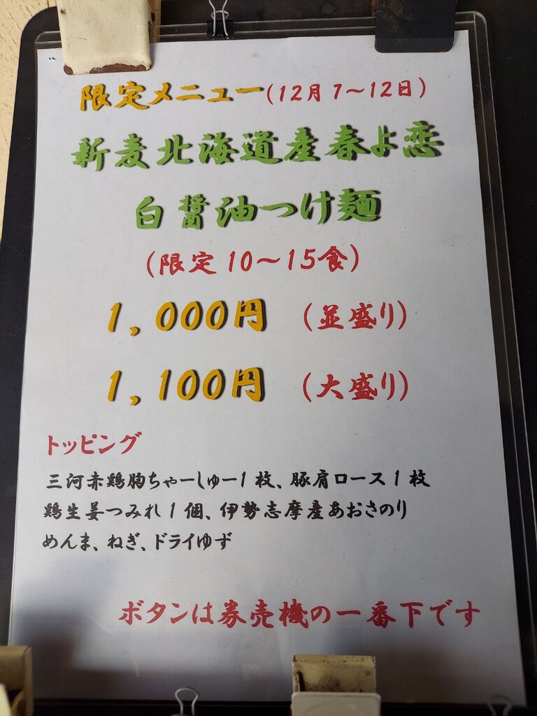 この週末はどこに行こうかな~と思っていると、昨年激旨でしたそにどりさんの「新麦・春よ恋つけ麺」が登場するとの告知📝