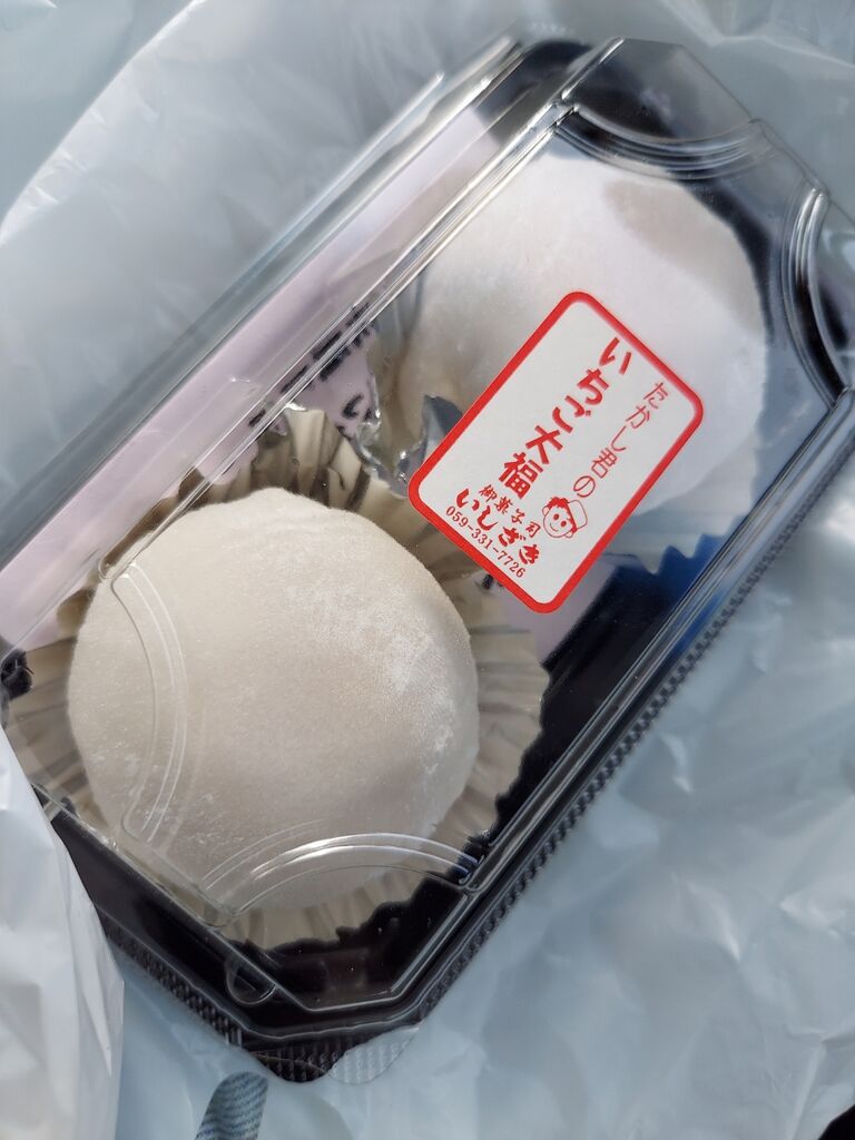 時間が有るのでいちご大福を買って我慢できずにモグモグ🍓
