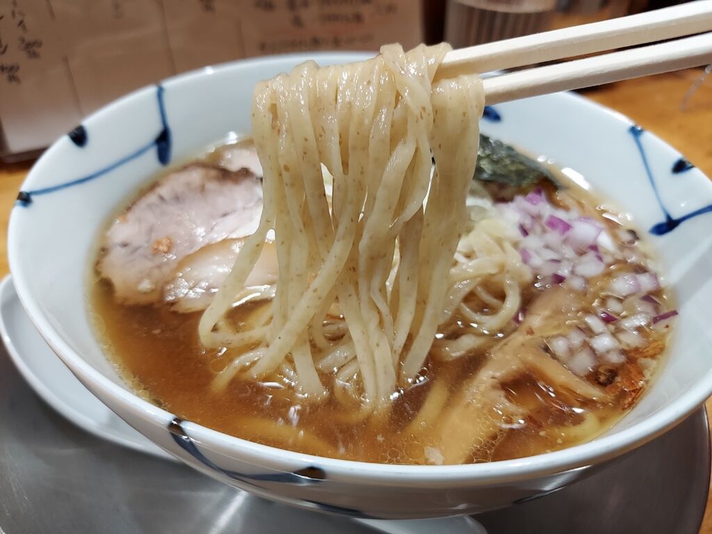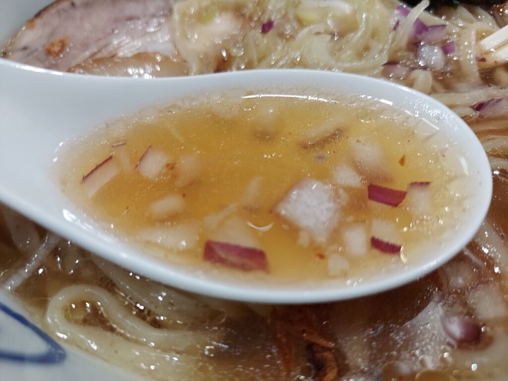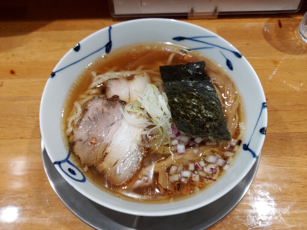 オニオンが美味そうな醤油ラーメン着丼。