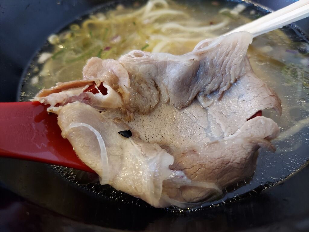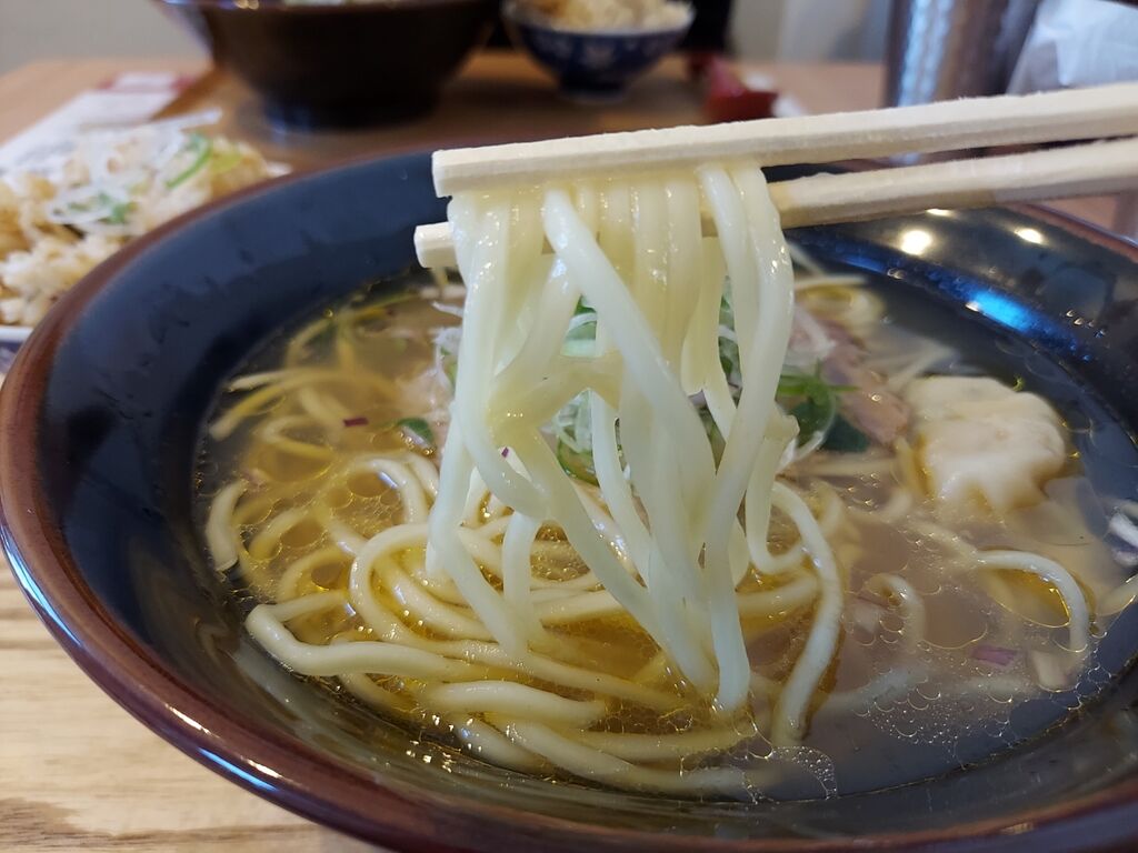 やや太めの麺はめちゃくちゃツルツルで歯がじんわり入る食感で、麺はやや短めでスルスルっと啜れますね。