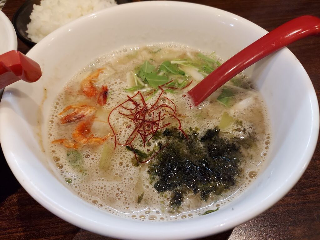 麺の旨味に負けない海老の風味と豚骨の旨味が絡んで旨いです!