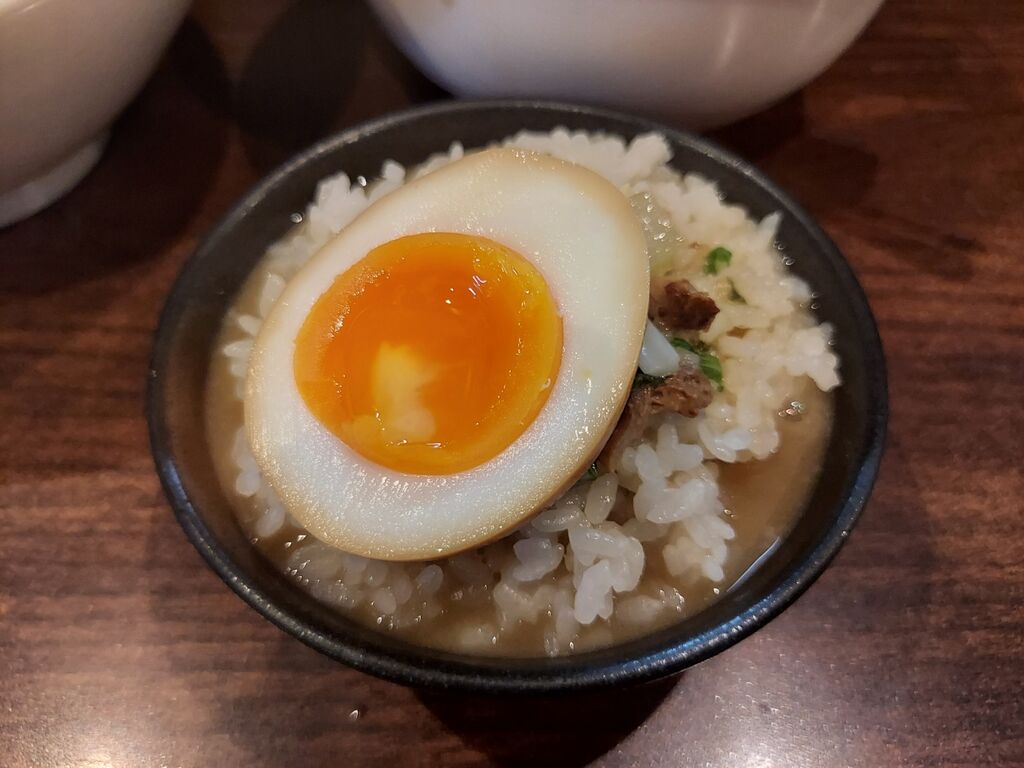 『海老豚骨つけ麺 900円』『味付玉子 100円』『ご飯小 50円』