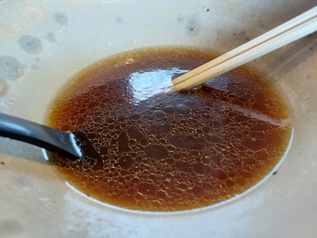 表面透明、奥濃いめな層のあるスープは想像よりオイリーで醤油のキレに鶏と魚介がじょうずに合わさって美味いです。