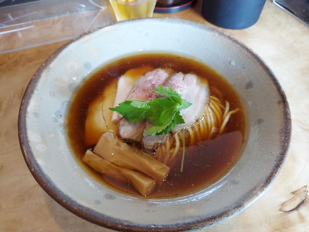 注文は同行者との👹圧で負けて、"ぐっと、地鶏の美味さ。"『和風鶏 醤油らーめん 1210円』です。