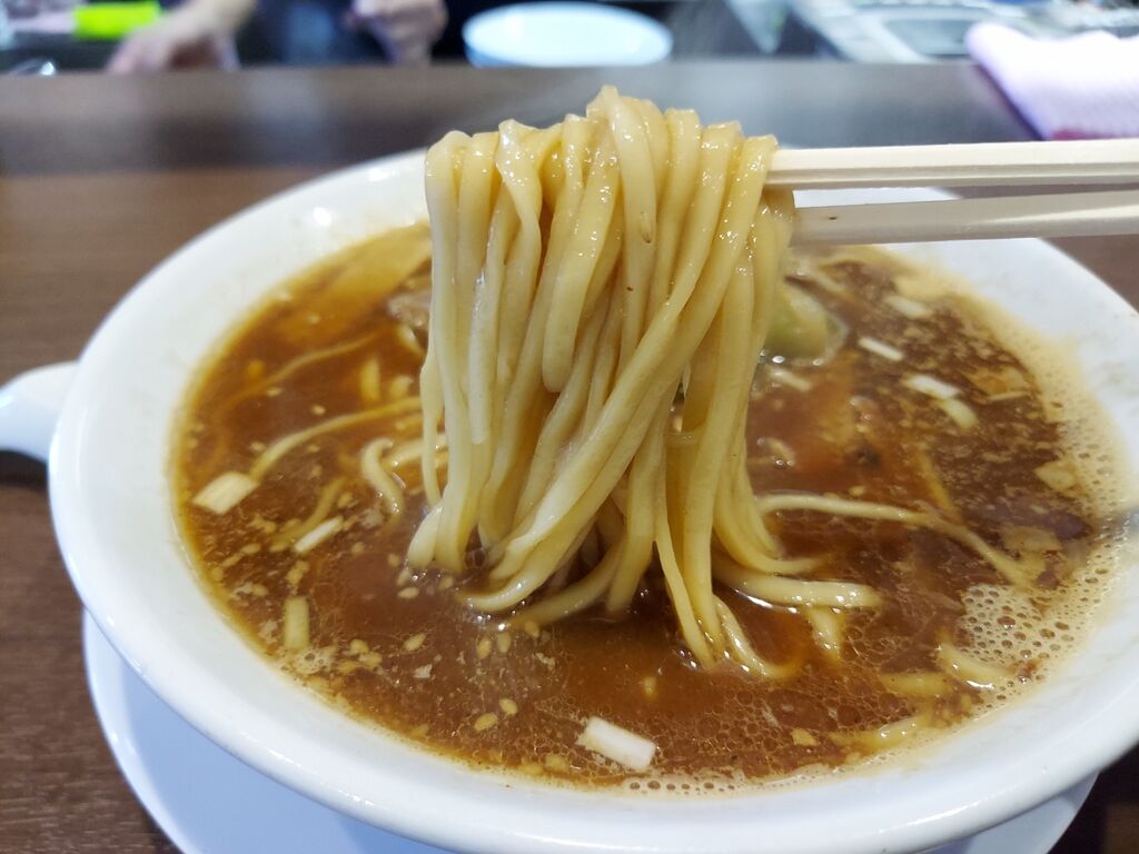 麺は中太の平打ちで、表面はツルッと、食べるとかなりモッチリな感じで、風味の良い八丁味噌を口まで運んできてくれます。