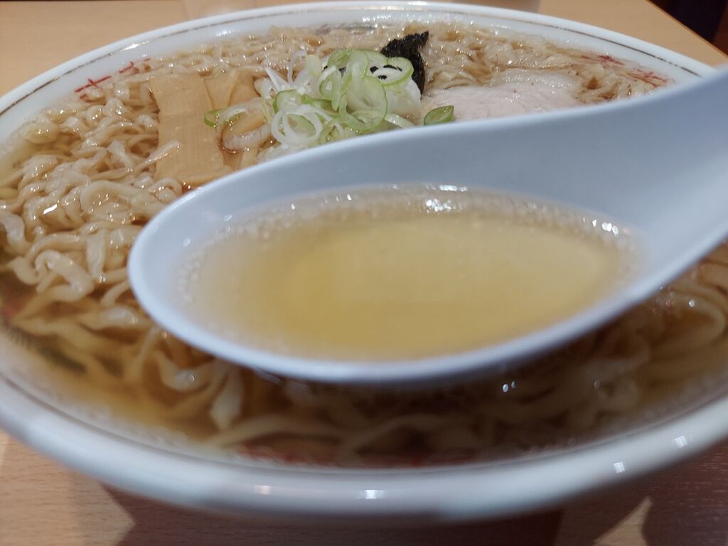 透明なスープがしっかりと麺に馴染んで、麺がメチャクチャ軽い感じで食べやすくて、麺量多いな!と思ったのにドンドン無くなりました!