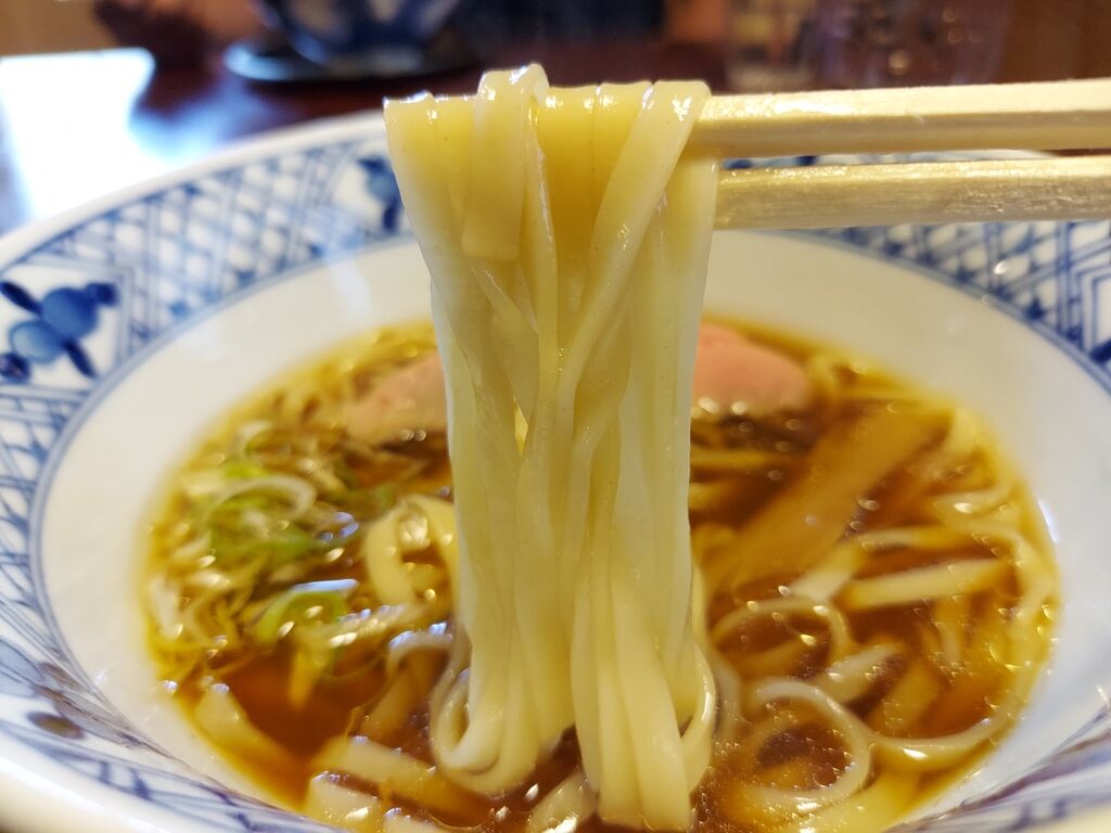 ツルツルっの平打ち麺が美味しいですね!