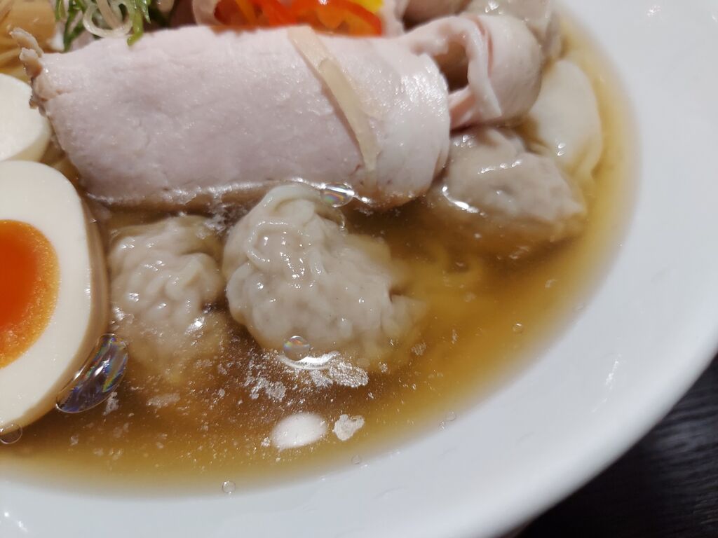 トッピングは、ロースハム、梨入りわんたん、揚げワンタンと主役ソロイ踏み!!